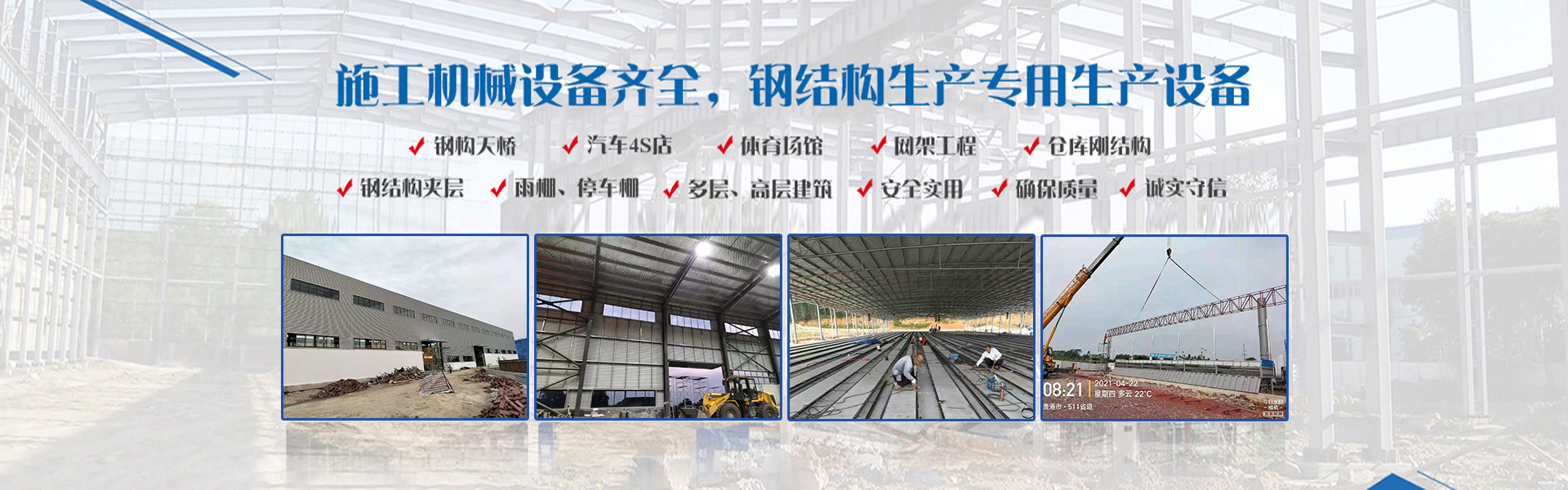 公司綜合實(shí)力雄厚,施工機(jī)械設(shè)備齊全,配置有多條焊接H型鋼生產(chǎn)線(xiàn),箱型鋼生產(chǎn)線(xiàn),以及C/Z型鋼生產(chǎn)線(xiàn),樓承板、彩鋼板、夾芯板等專(zhuān)用生產(chǎn)設(shè)備,產(chǎn)品質(zhì)量可靠。